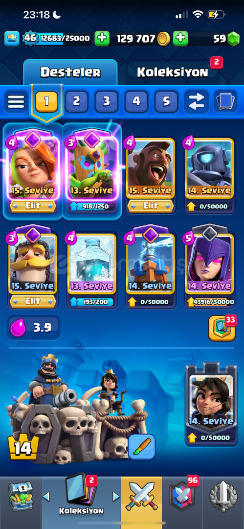 6 evo 3 kart max5 kart 15 seviye keşiş haric tüm kartlar var 46 seviye hesap