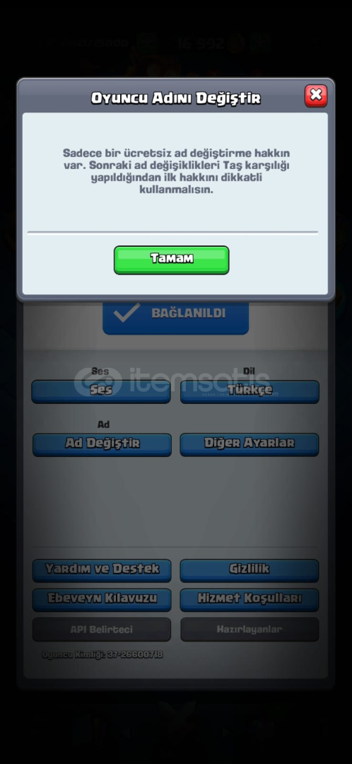 • HESAPTA ÜCRETSİZ İSİM DEĞİŞTİRME HAKKI MEVCUTTUR