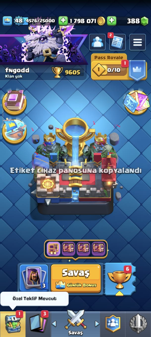 Yeni güncelleme sebebiyle sezon geçişlerinde CLASH ROYALE HESAPLARINDA kupa kaybı yaşanabiliyor bilginize.