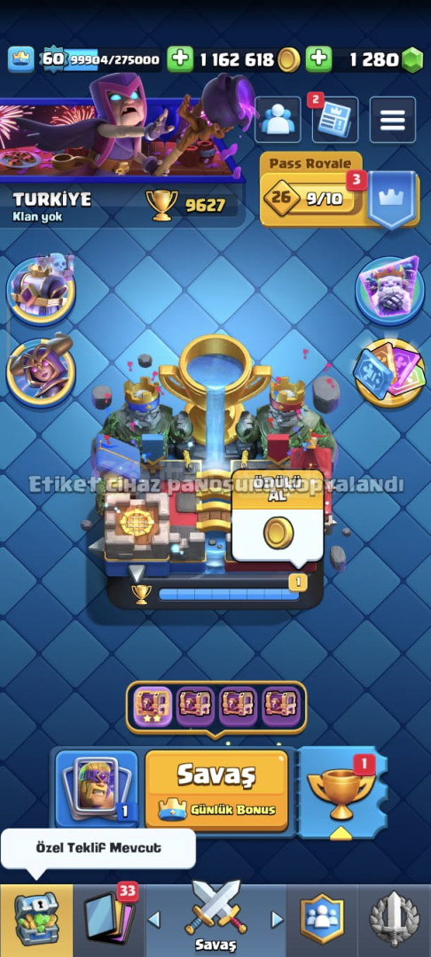 Yeni güncelleme sebebiyle sezon geçişlerinde CLASH ROYALE HESAPLARINDA kupa kaybı yaşanabiliyor bilginize.