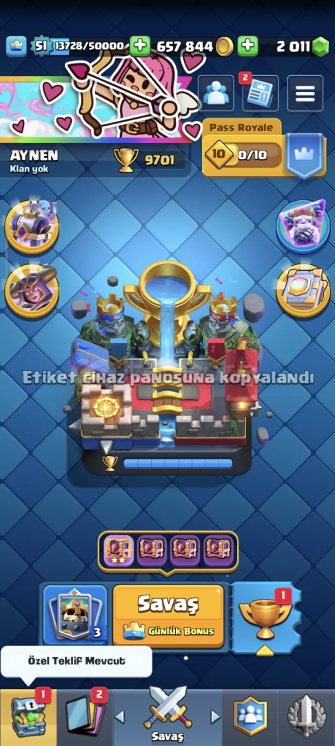 Yeni güncelleme sebebiyle sezon geçişlerinde CLASH ROYALE HESAPLARINDA kupa kaybı yaşanabiliyor bilginize.