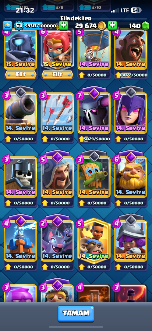 9700 KUPA ☁️ 53 SEVİYE ☁️ 12 EVRİM ☁️ 6ELİT