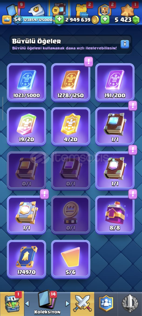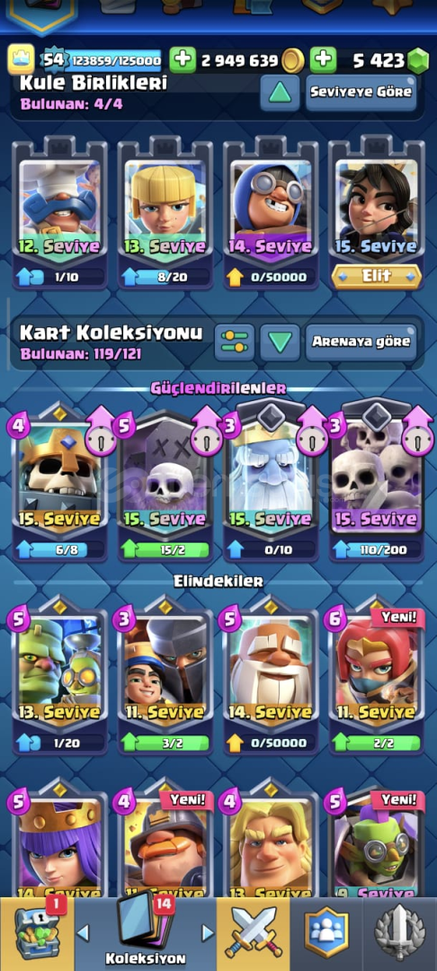 Hesaba detaylıca bakmak için: https://royaleapi.com/player/PPYGUYGLVHesaplar asla geri çekilmez!Hesap koruması aktif değildir!Yeni güncelleme sebebiyle sezon geçişlerinde CLASH ROYALE HESAPLARINDA kupa kaybı yaşanabiliyor bilginize.Sipariş Sonrasında oluşacak sonular için kalıcı destek!"Neden beni tercih etmelisiniz?"+660 Başarılı işlem.Yüksek müşteri memnuniyeti.Supercell ...