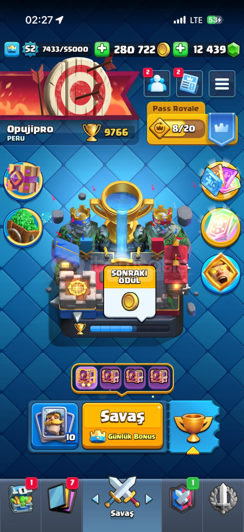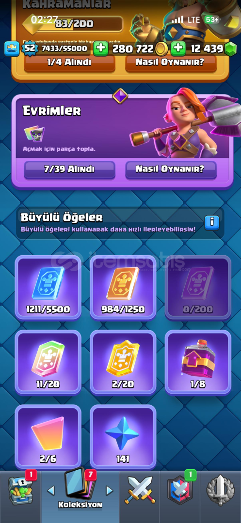 ⚡9700 KUPA⚡7 EVRİM⚡52 SEVİYE⚡12000 TAŞ⚡