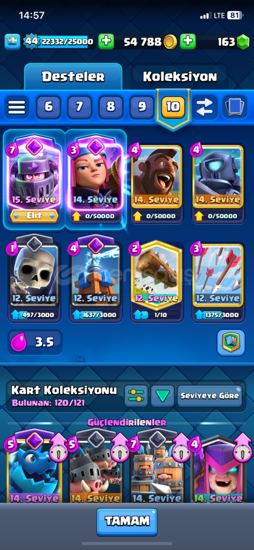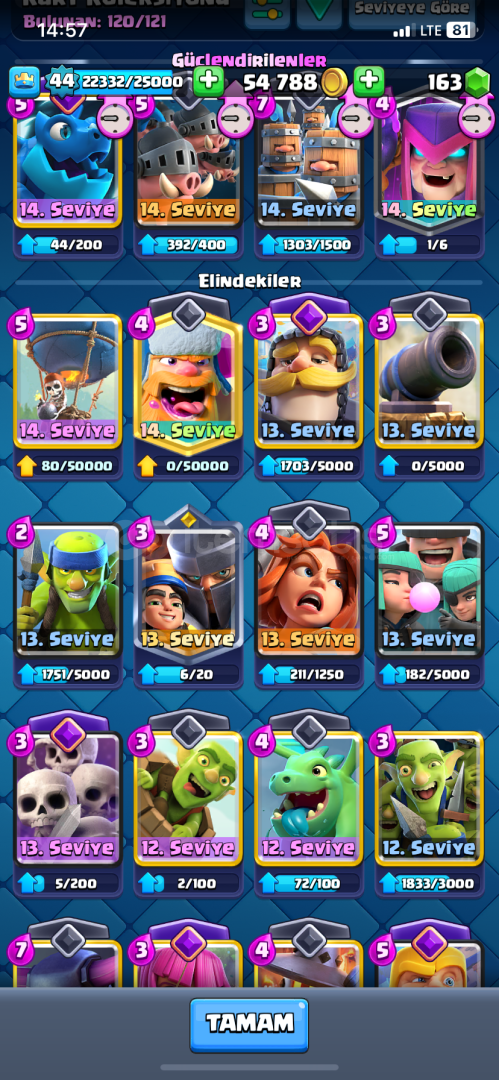 Hesapta 9 Evrim vardır aşçı kulesi 14 seviyedir