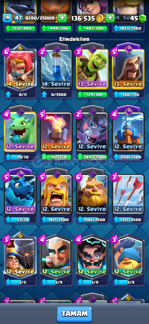 MEGA ŞOVALYE CADI FİŞEKÇİ TESLA BÜYÜCÜ ELEKTRO EJDERHA EVRİMİ +3 EVRİM PARÇASI13 ŞAMPİYON PARÇASI15LVL MEGA ŞOVALYE(Evrimli)15LVL DOMUZ BİNİCİSİ15LVL BALON14LVL BOSS HAYDUT14LVL CADI(evrimli)14LVL FİŞEKÇİ(evrimli)İsteyene 10.000 yapıp verilir isteyen bu halde kendi yapar