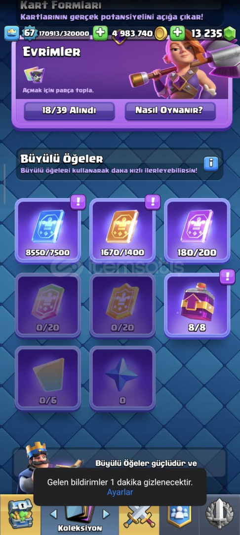 | 9800 KUPA 67 LEVEL | 18 EVRİM 45 ELİT KART |
