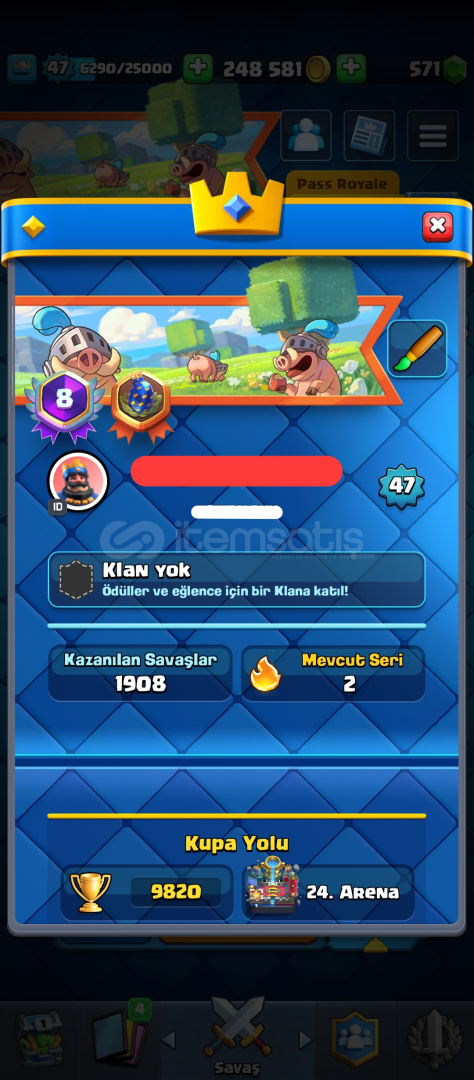 Hesap 8 yıllıktır. Hesap 9.820 kupadır.Hesap 47 seviyedir.2 tane elit, 9 tane 14 seviye vardır.10 tane evrim vardır: Mega Şövalye, Cadı, Büyücü, Havai Fişekçi, Tesla, Şövalye, Kraliyet Devi, Okçular, Bombacı, Elektro Ejderha. 121/121 bütün kartlar bulunmaktadır.34 tane güzel ve toxic emoji vardır. Hypnos Cr emojisi de bulunmaktadır.4 tane kule görünü...