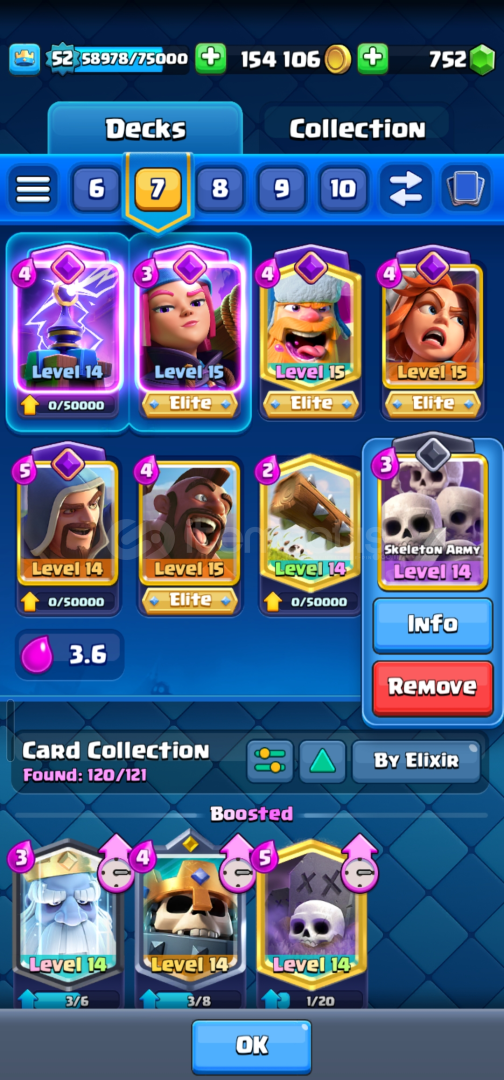 11 evrim 9900 kupa +700 elmas 7 yillik hesap birsuru elit ve 14lvl kart var icinde sarmasik haric tum kartlar acik pazarlik payi vardir