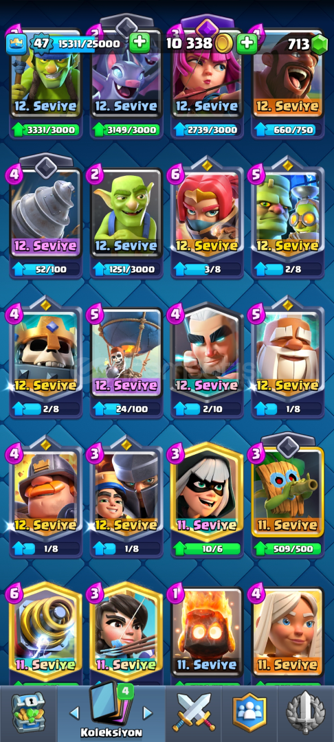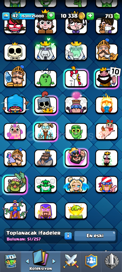 Hesabim emek hesabidir içinde 50 flama 60 emoji bulunmaktadir ve değerli emojiler vardır hesap 2016 dan beri açıktır ve içinde 900 elmas vardır Kart levelleri yüksektir kule dekorları vardır 9 evrim vardır fotoğrafını koydum inceleyebilirsiniz fiyatta anlaşılır mesaj atınız