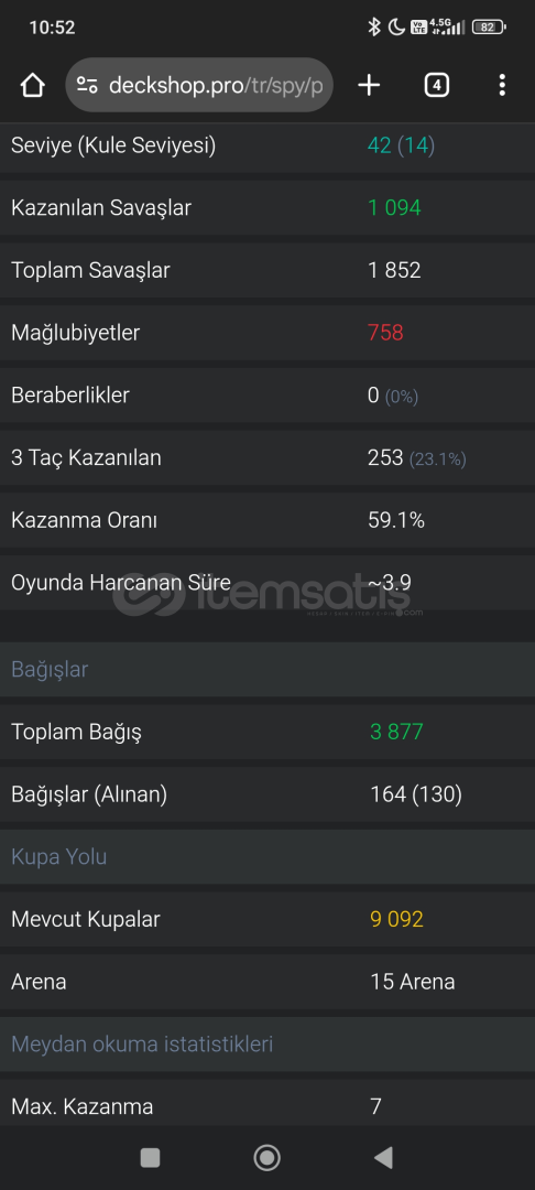 9000 kupa Evrimler : Elektro Ejder, İskelet Ordusu, Okçular, Havan, Tesla, Avcı, Büyücü, Barbarlar15 Seviye Kartlar : Goblin Fıçısı, Goblin Çetesi1089 Taş146000 AltınID: #UQG0PJCCJFiyat ve Detaylar İçin DM