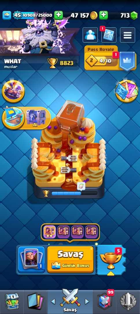 Hesapta 10 a yakın evrim vardır 3 tane elit kart 5 tane 14.seviye kart2-3 kere pass alınmıştır