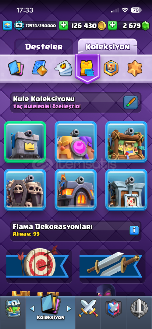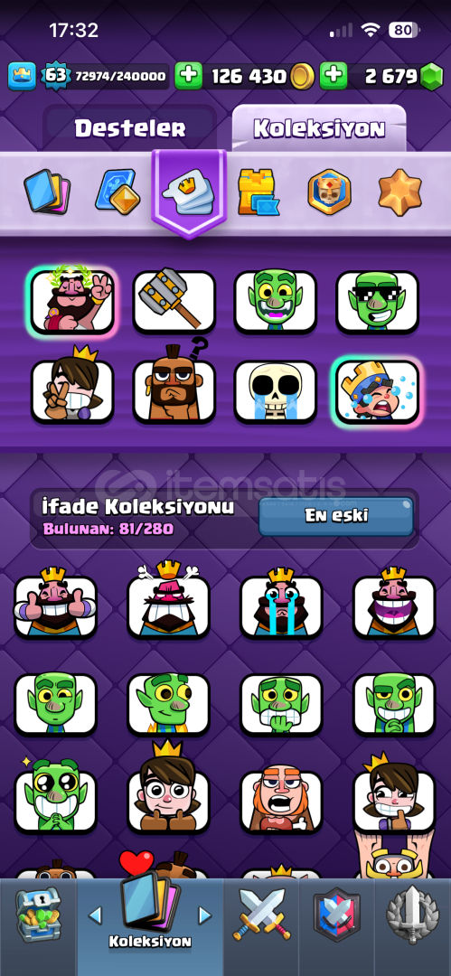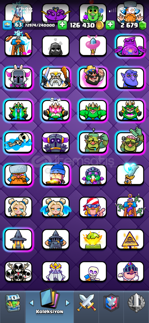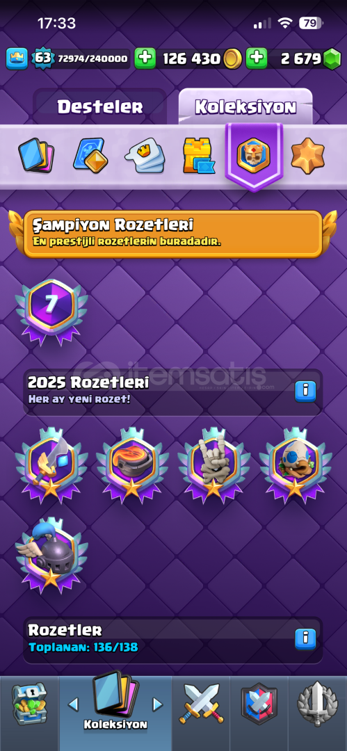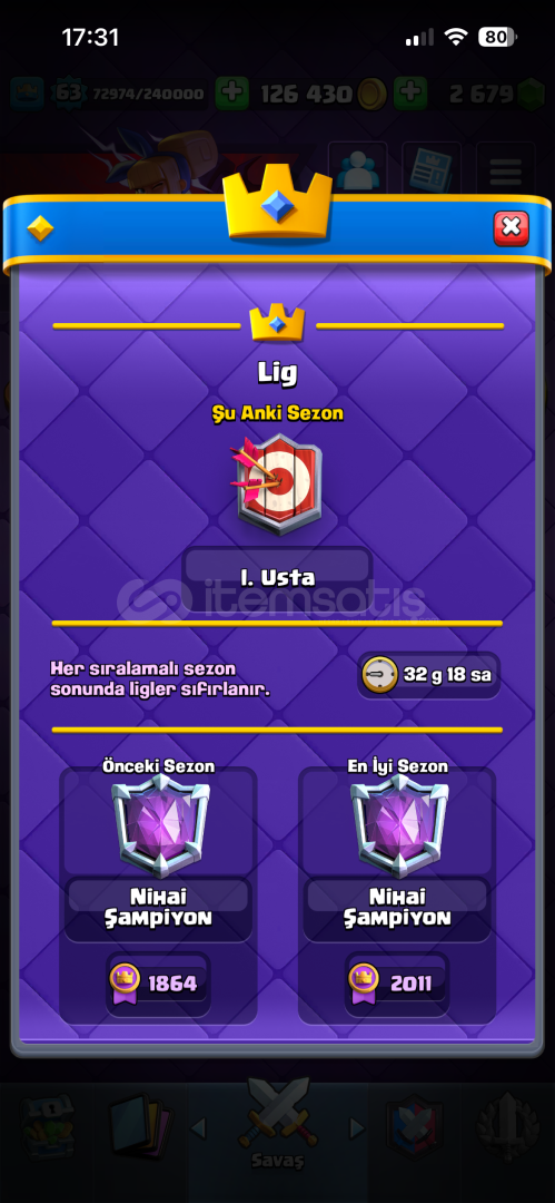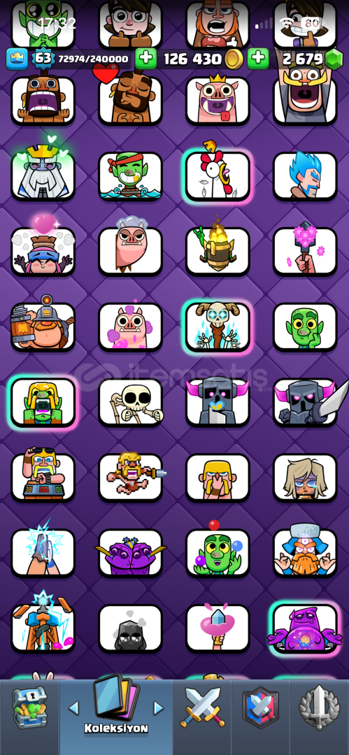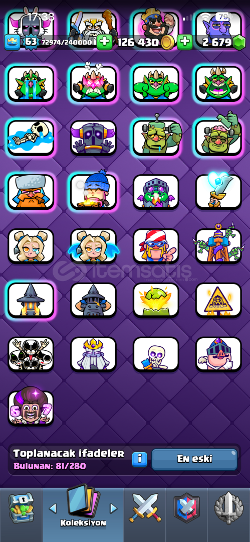 10 bin kupa 63 seviye nihai hesap (hesap aktif oynanmakta olup gelişmektedir)5 tane nihai rozet12x klasik mücadele rozeti20 tane evrim ( 21 olcak bu sezon )1 tane 16 seviye22 tane 15 seviye2 tane 15 seviye kule birliği1 tane 14 seviye kule birliği32 tane 14 seviye kart5 kule deseni81 tane ifadeklan savaşı ve turnuva istatistikleri iyidirisim değişimi için 1000 taş (2500 taş) mevcutturprofil etiketi #PLLV2P0L9