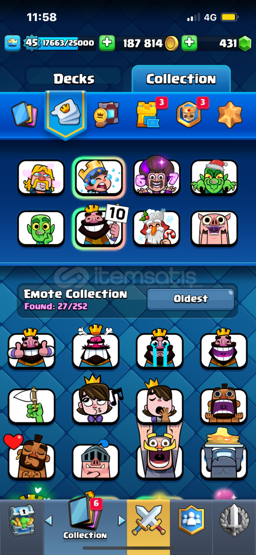 Acil satmam gerekiyor, o yüzden bu fiyata satılacaktır. Herhangi bir soru için bana mesaj atabilirsiniz. Hesapta 8000 kupa mevcuttur. Hesabı yaklaşık 2 yıldır kastmaktayım. İçinde güzel emote'lar bulunmaktadır. Tam mainlemelik bir hesaptır. Acil ihtiyacım var. Alırsanız sevinirim. Mail teslimi vesaire her şey yapılacaktır. İyi günler.