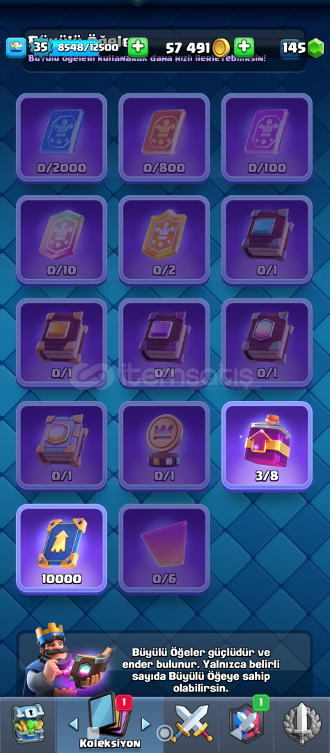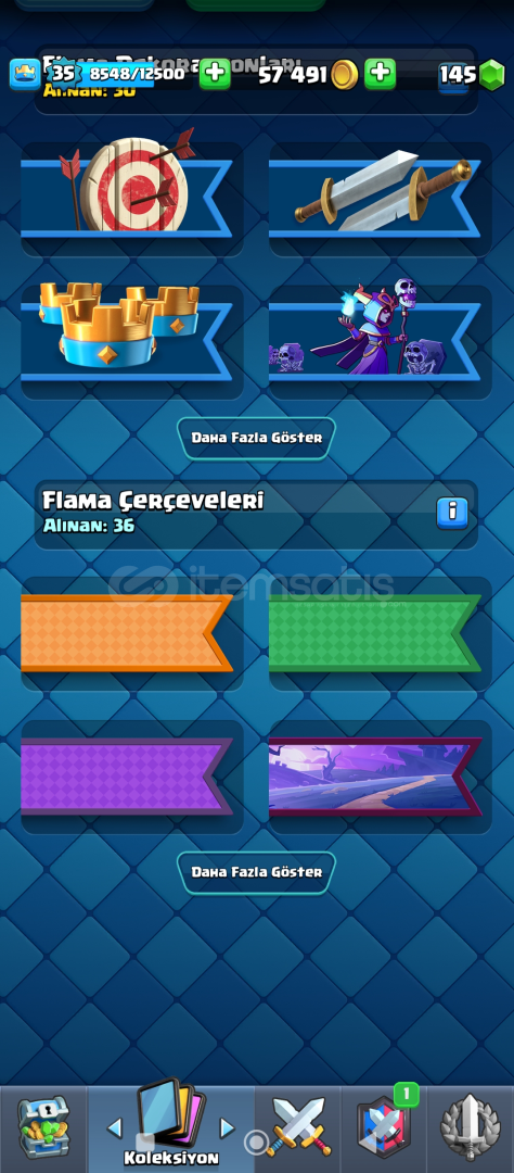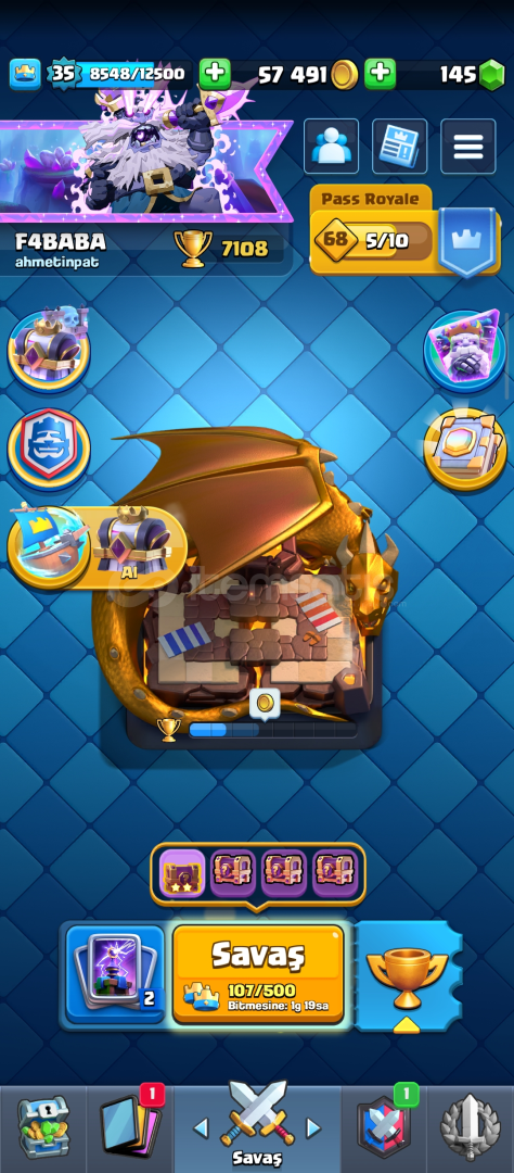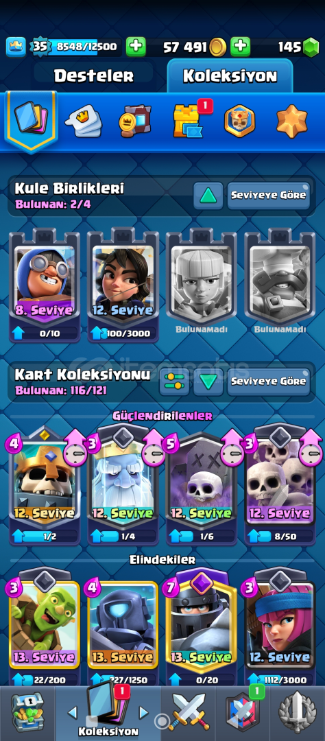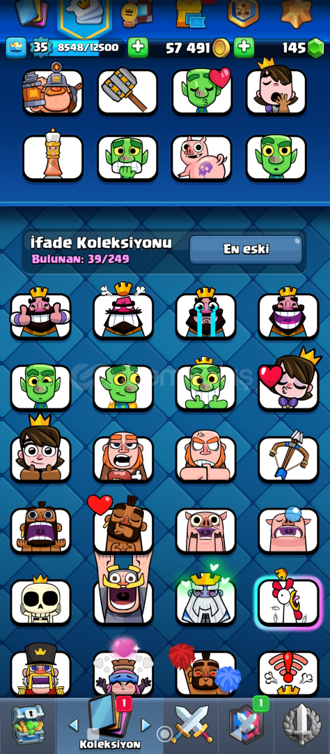 Hesap 35 lvl 7108 kupa6 adet evrimMega şovalyeTeslaOkçularBüyücüElektro ejderBarbarlar145 taş50k+ altın116 karakter10k elik joker kart39 emoji30 flama deseni36 adet flama çerçevesi