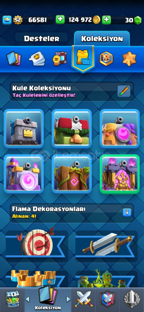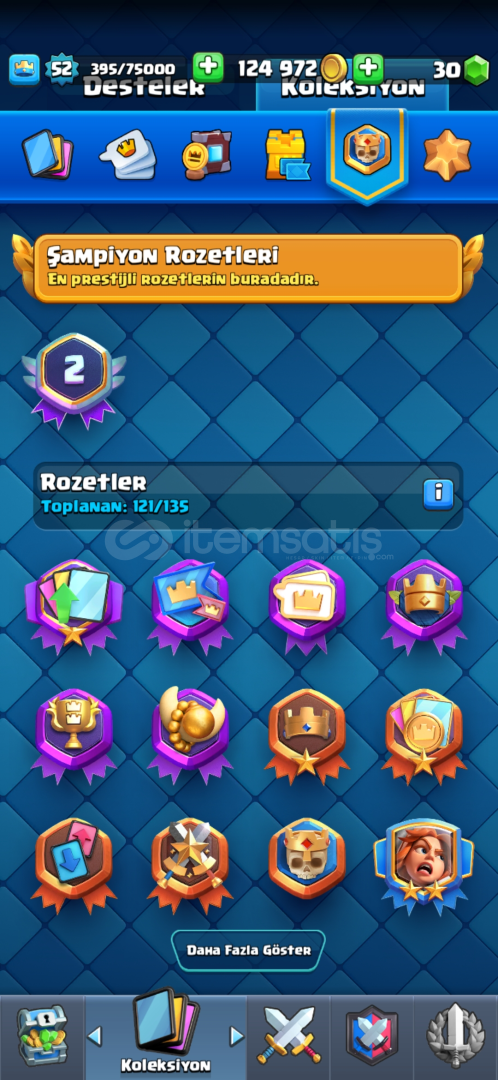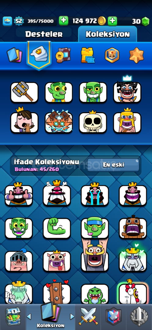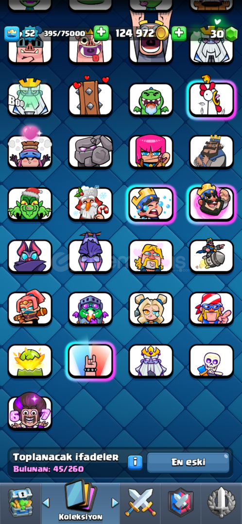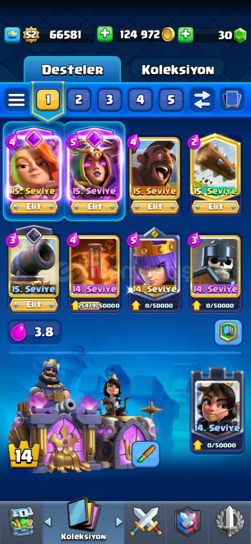 Hesap 14995 kupayı görmüştür.Hesapta 9 adet evrim açıktır.5 elit kart vardır 6. Sinin yarısı tamamlanmıştır.Meşhur hypnos tokmak emojisi mevcuttur.1 adet elmas bilet alınmıştır.Toplamda 45 emoji vardır.Merak ettiğiniz başka sorular varsa sorabilirsiniz.Alıcısının pişman olmayacağı bir hesaptır ihtiyactan satılıktır.