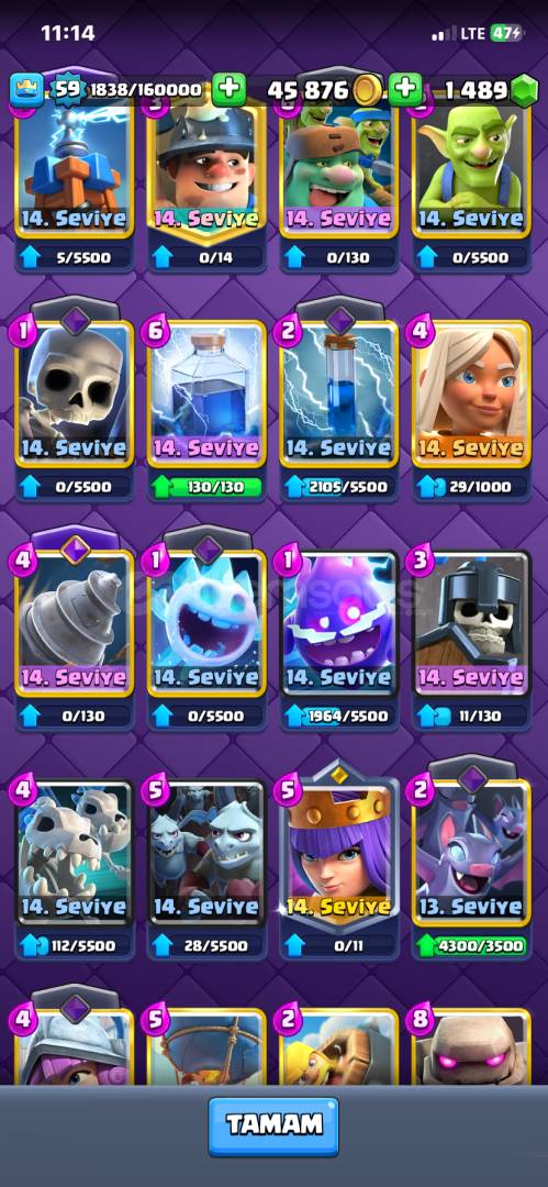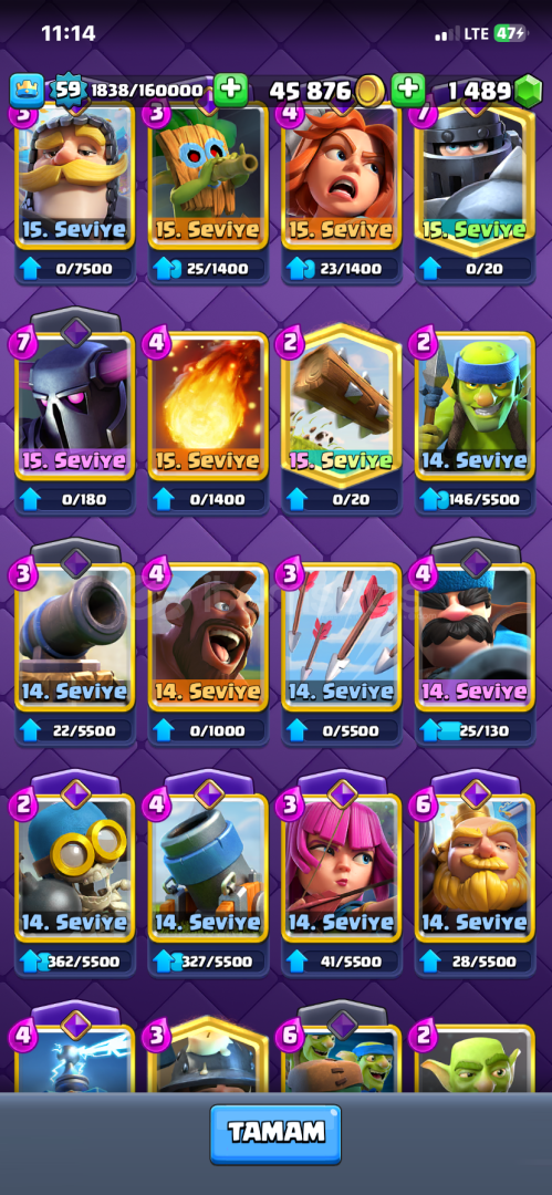 Hesabım oynamadığım için satılıktır. Çoğu kart oynayarak 15 seviyeye ulaşır. Herhangi bi sorunda yardımcı olurum. Nihai ye kascak zamanım yok büyük şampiyonda bıraktım. Fiyatda yardımcı olurum, alana şimdiden hayırlı olsun.