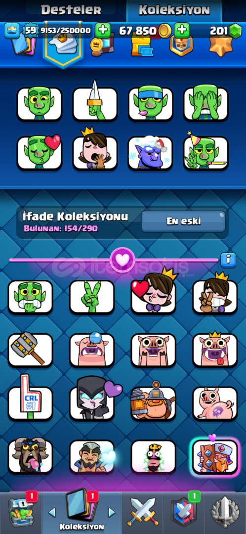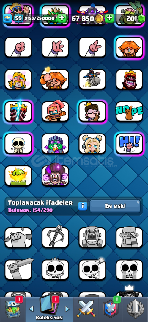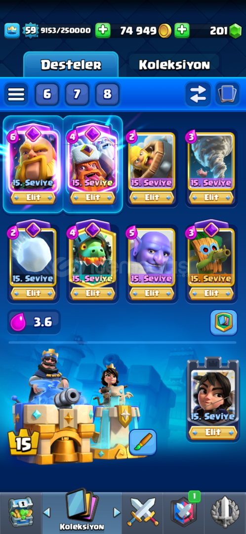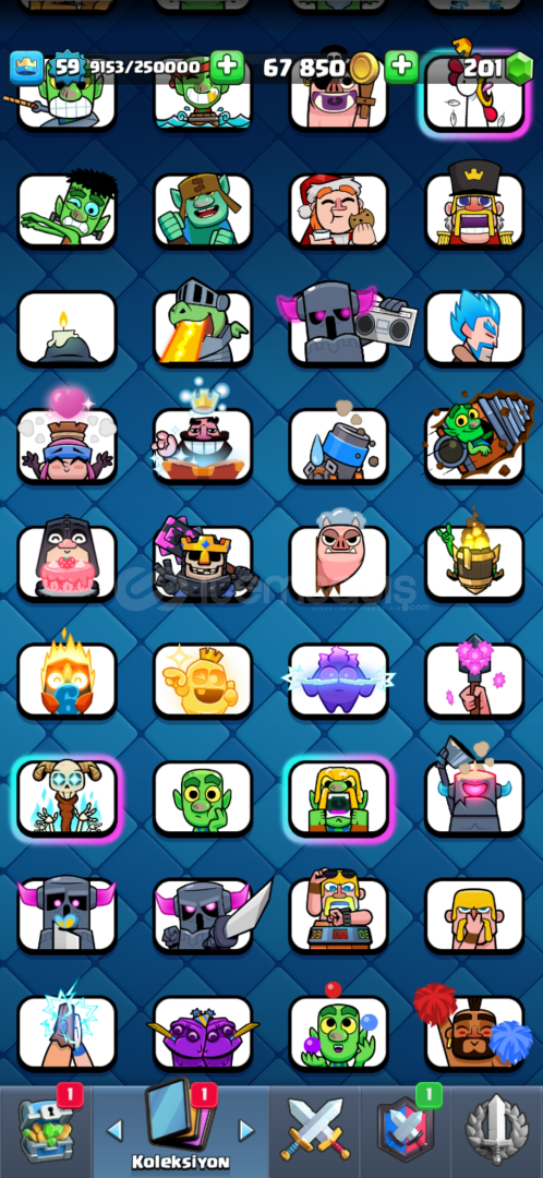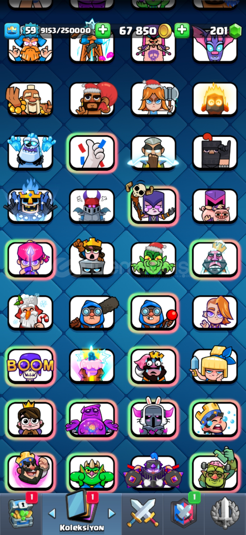 Hesapta 18 evrim vardırKartların çoğu fulldür (14 seviye & 15 seviye)Hesap Asil sampiyona ulaşmıştırPazarlık vardır