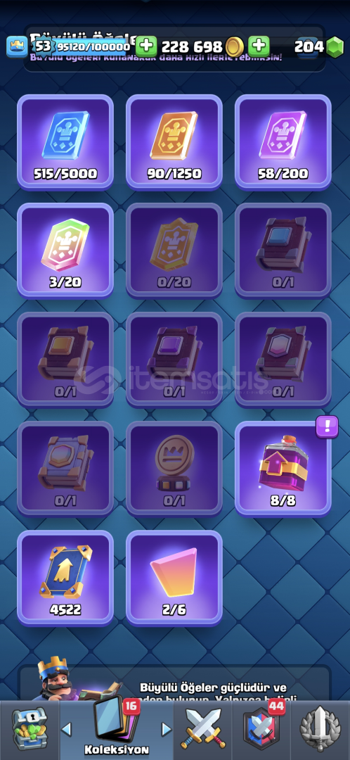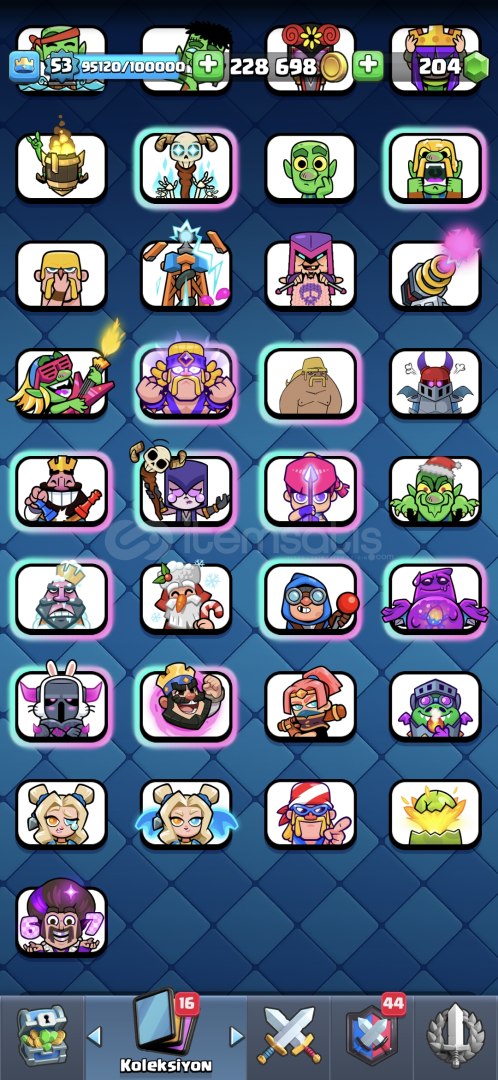 Hesap 4 yıldır kullandığım hesaptır 6 adet elit kart 10 adet evrim vardır kart sayıları fazla sadece altın az olduğu için yükseltemiyorum