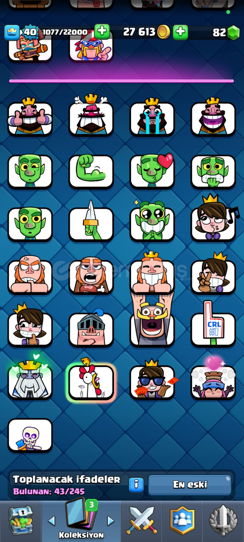 HESAP İÇERİĞİ :7652 KUPA 8 EVRİM 5 EVRİM PARÇASI ELEKTRO EJDER BüyücüOkçular Tesla Cellat Dart Goblin Kar Topu BombacıToplamda 43 Emoji vardır En Sinir Bozucu Emojiler vardır başta tokmak olmak üzere GMAİL DEĞİŞCEK DAHA FAZLASI İÇİN DM