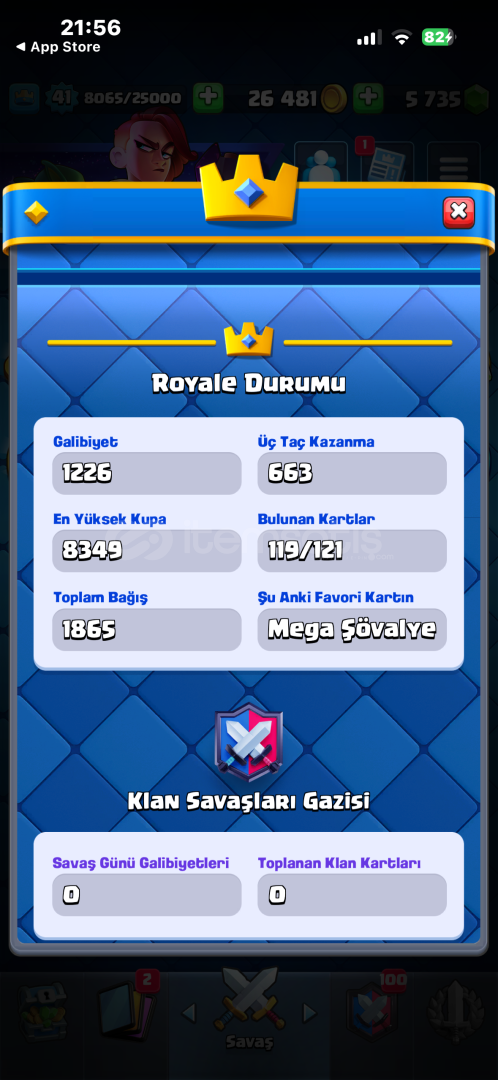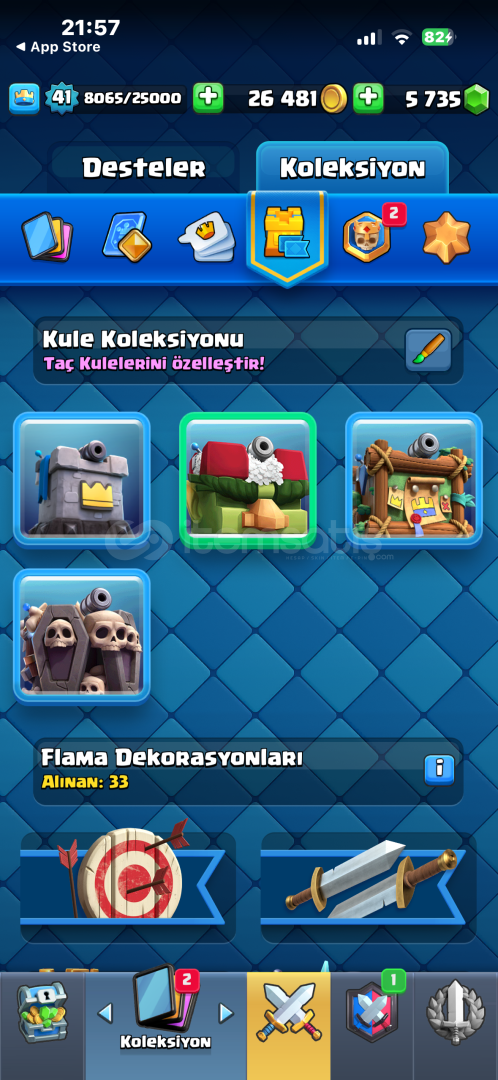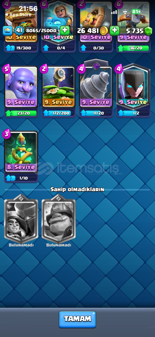 Hesapta 5735 elmas bulunmakta ESKİ TARİHLİ HESAP. 8349 kupa 41 sv 6 evrimli kart bulunmakta ve 3 kule görünümü vardırPAZARLIK SÜNNETTİR