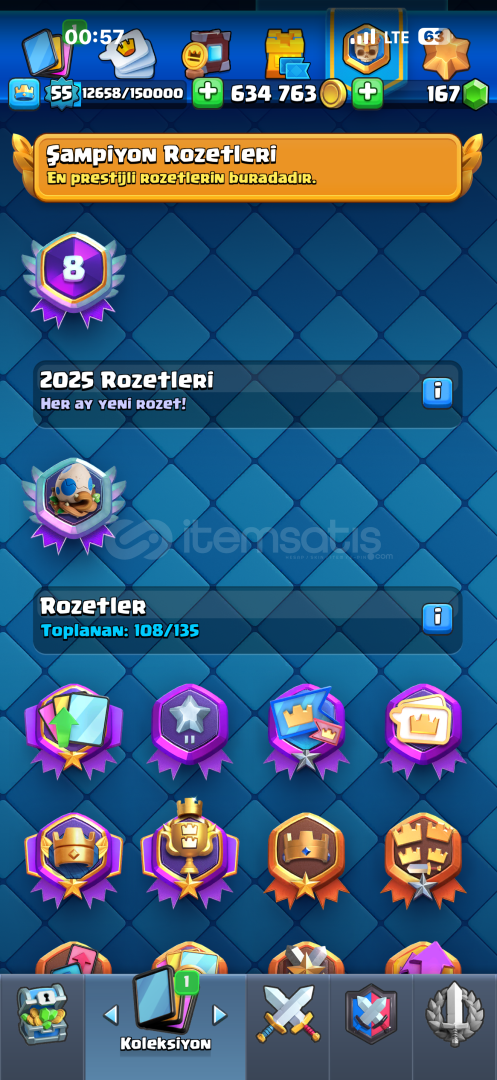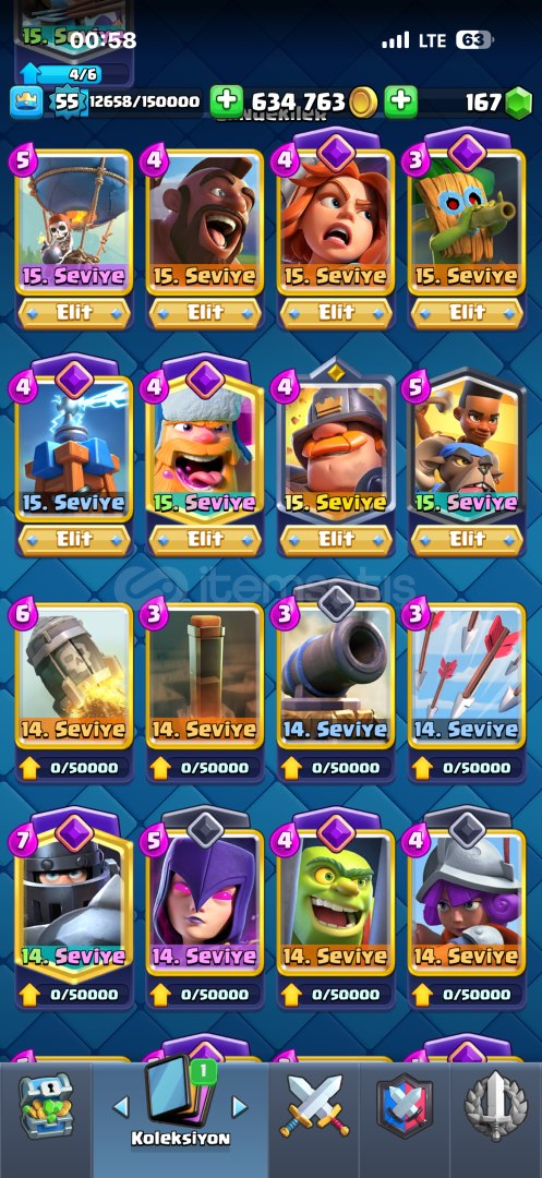 14 evrim 8 tane 15 lvl kart 15k görmüş hesap 8 yıllık rozet var
