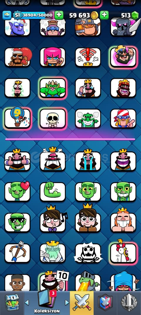 ---clash royal kupa 9695 24. arena 12 evrim 7 parca kesis bulunamadı 4 tane 15. lvl 10 tne 14. lvl 9 tane kule görnümü nadir emoji 2 3 tane falan ---brawl stars 10500 kupa eglenceli düsük kupa 74/95 karakter (kaze var alınmıstır )3 tane battle pass eski nadir kötü baz, asi lola efsanevi 3gizemli 3 destansı 42süper ender 38 ender 44 12 tane 11 lvl (hiperle beraber) 10000 mücehver ----*daha da anlatılcak bir sey yok gibi g&...