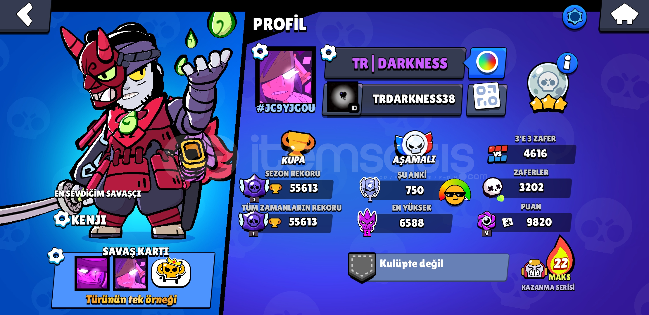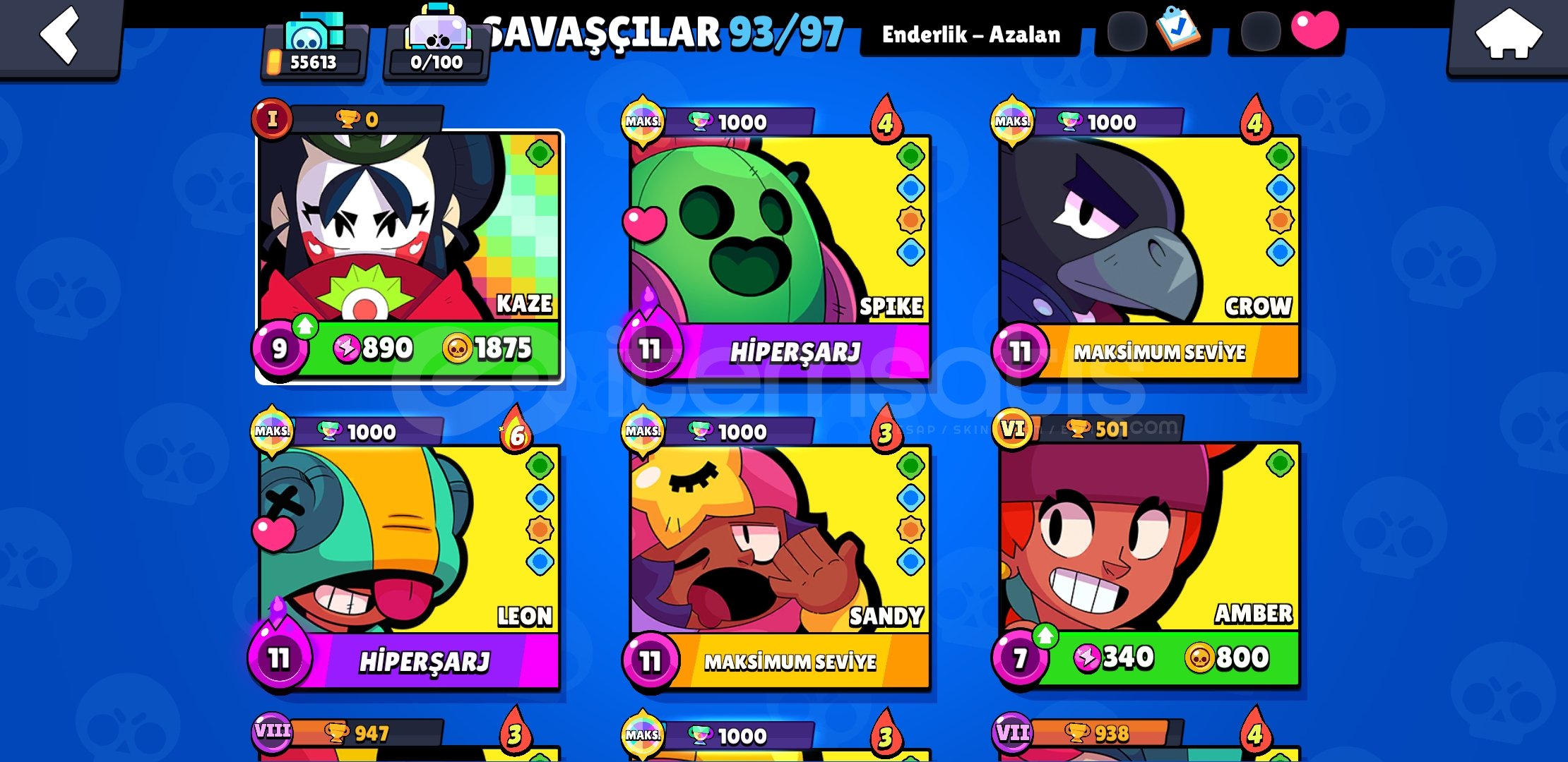 Brawl stars:55.6k kupaAy şöhreti 39820 kayıt puanı2bp 3bp+17 1k kupa karakter28 maxs seviye18 açık hiperşarj93 açık karakter3 hiper 6 efsanevi 7 gizemli 72 destansı kostüm193 taşIsim değişme 90 taşClash royale:7.6k kupa889 taş9 adet evrim4 kule birliği4 şampiyon13 seviye ana kule5 evrim parçasıIsim değistirme ücretsizClash of clans:13 seviye belediye binası5 inşaatç...