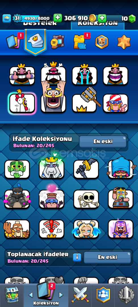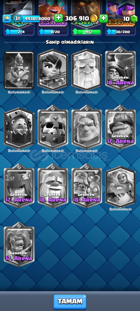5500 kupa 31 seviye olmayan kartlar dışında hepsi var
