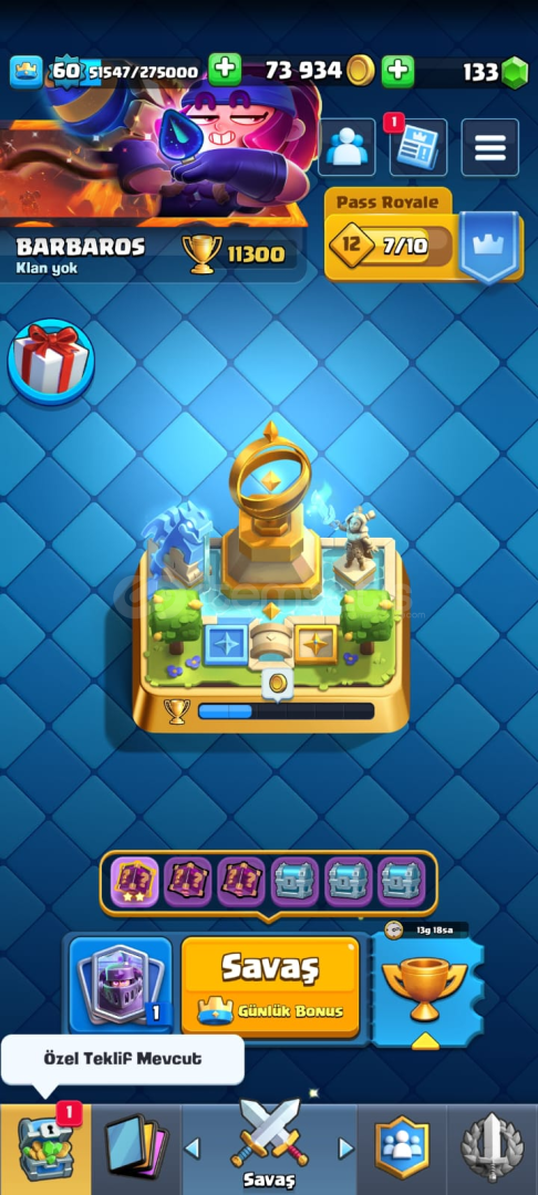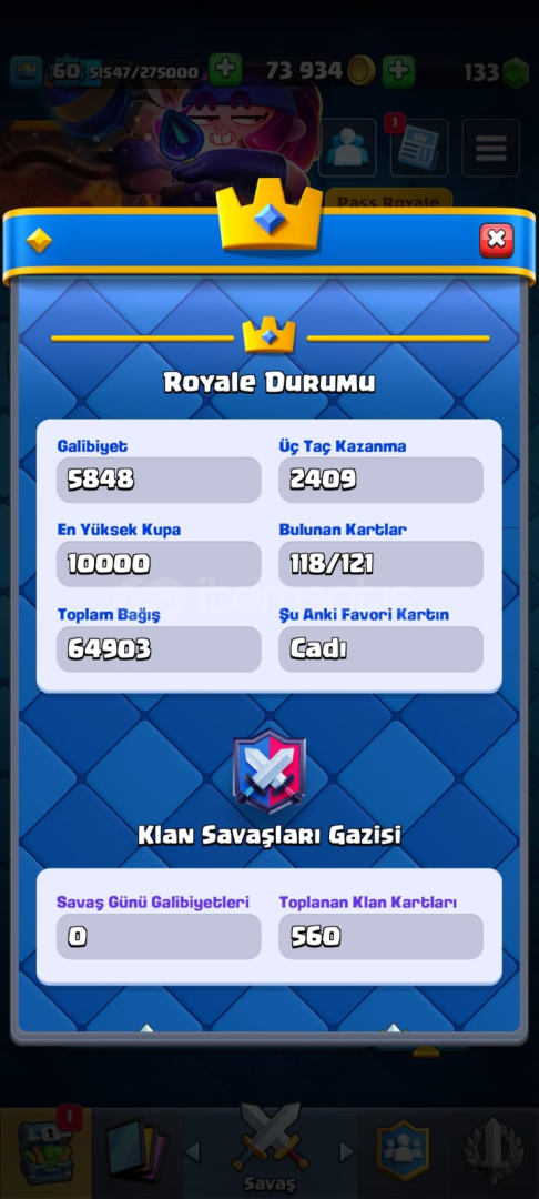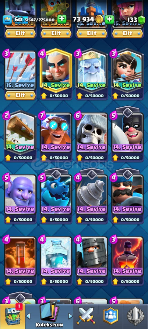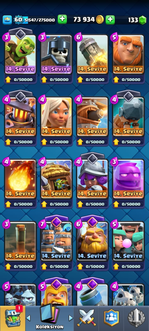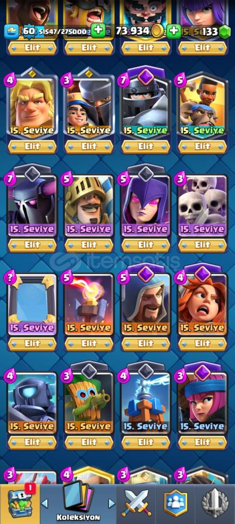 Clash Of Royale Dolu Hesap 11.300 kupa,60 Seviye,22 adet Maks Karakter,49 adet 14. Seviye karakter9 adet evrimliHesaba ait mail ve şifre verilecektir