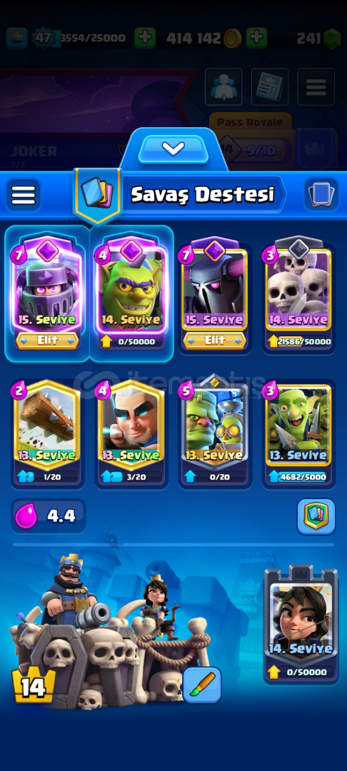 Clash royal satılık hesap 8100 kupa 52 seviye