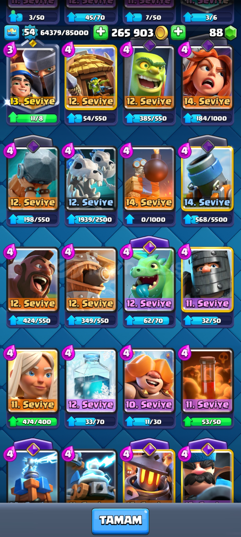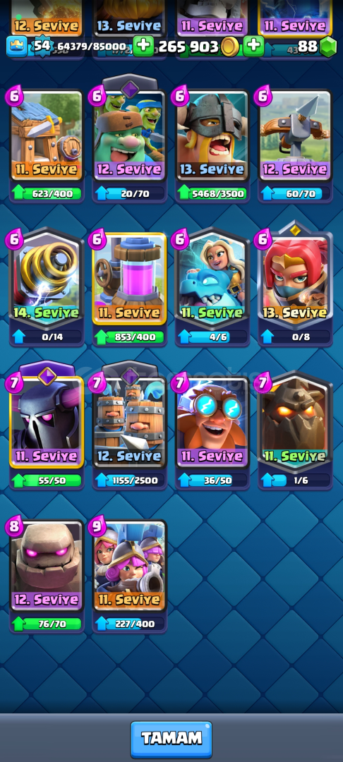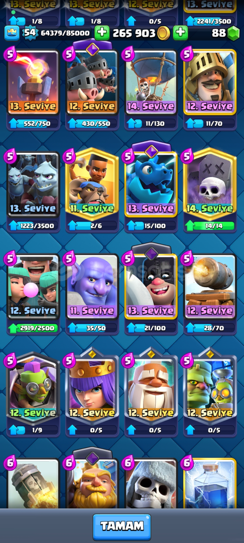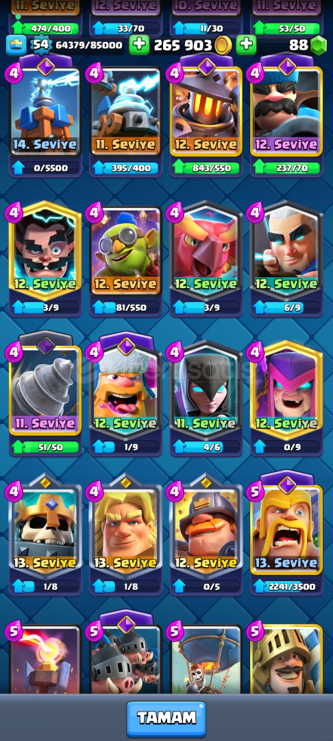 CLASH ROYALE 10K KUPA TÜM KARAKTERLER MEVCUT