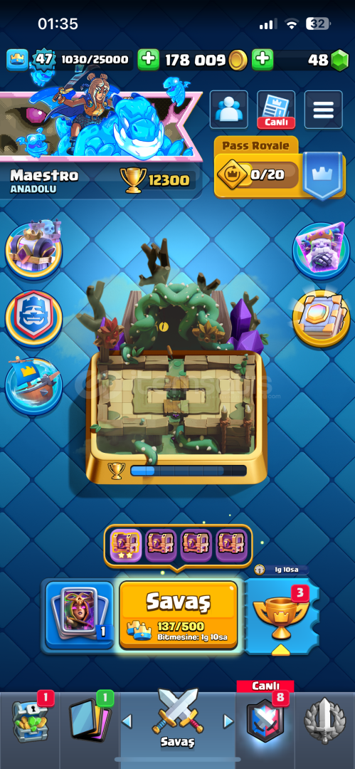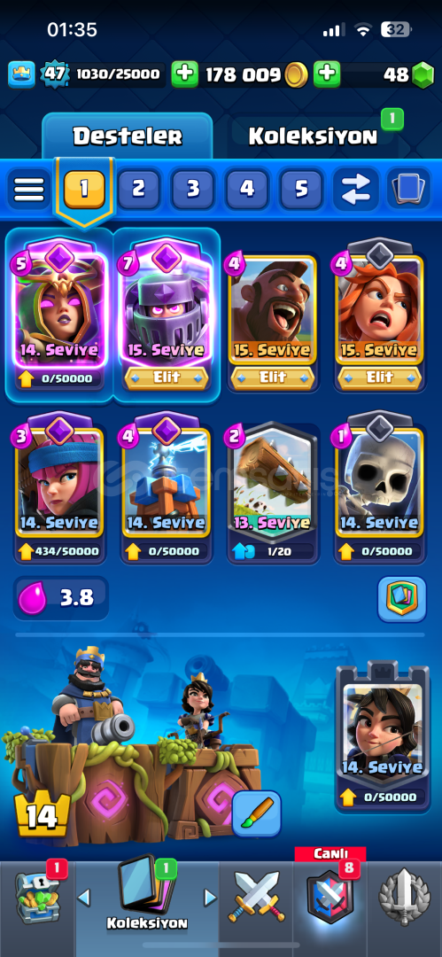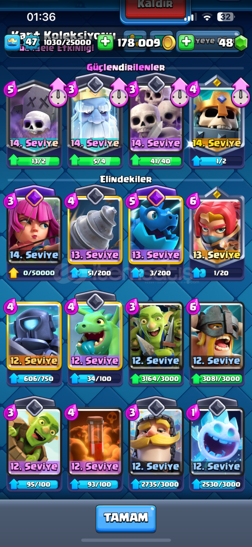 Clash Royale12000 Kupa47Lvl2017 Kurulumlu7 Evrimli MegaSövalye,Cadı,Fişekçi,Elektro Ejderha,Büyücü,Okçular,Tesla3 Tane 15 Levelli Mega Şövalye Domuz Binici Valkür Alıcısına Şimdiden Hayırlı Olsun Satma Amacım Farklı Oyuna Başlamak