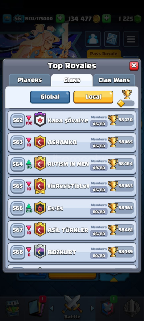 15 bin kupaya çıkımış hesap her sezon sıfırlanıyo bildiğiniz üzere alcak arkadaşla anlaşırsak şuan 11 bin 15 bin yapar veririm 13 tane elit level(max) 23 tane 14 level kart var diğer kartlardada 11 aşşağısı yok genelde 12 13 level 15 tanede evrim var nerdeyse 150 ye yakın emoji var birde bu hesap yerel ilk 700lerde olan bir klanın lideri isteyen klanla beraber alır istemesse indir...