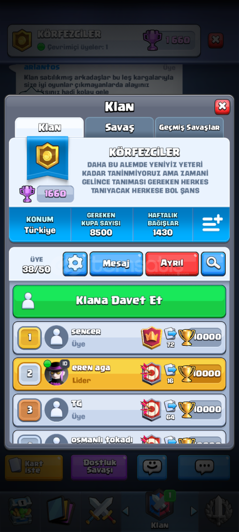 Pazarlık olur klana katılım sağladınız da liderlik direk verilir aldım diyene 2500 TL kardesim