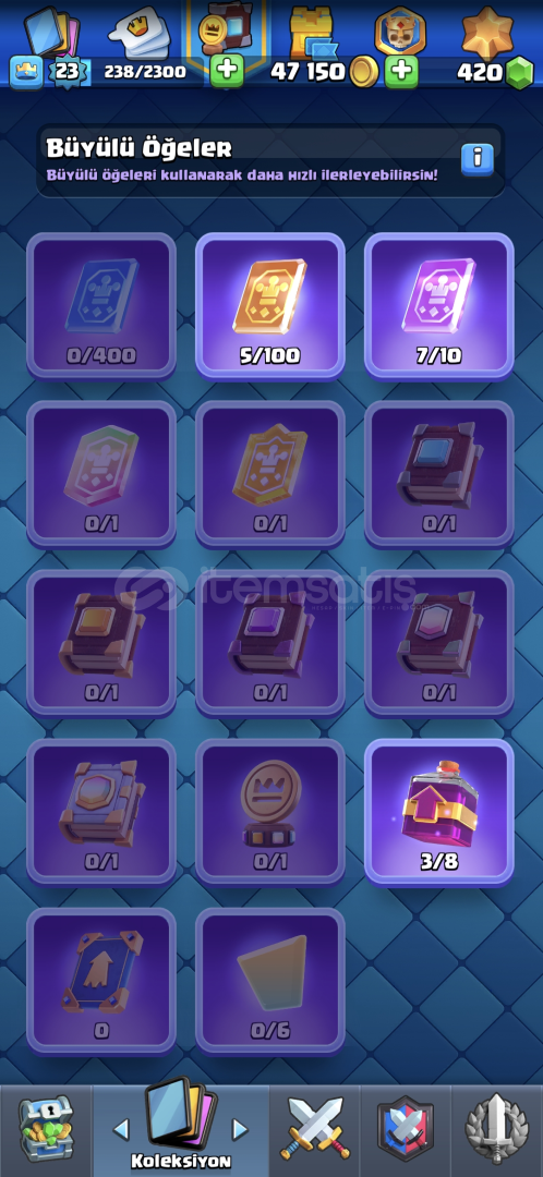 Clash Royale 3000 Kupalı Hesap420 elmas23 Seviye63 Karakter11 Emoji(değerli)Hesapta isim değiştirme hakkı mevcutE postası sizin üzerinize devredilecekAnında Teslimat ve Güvencemiz ile