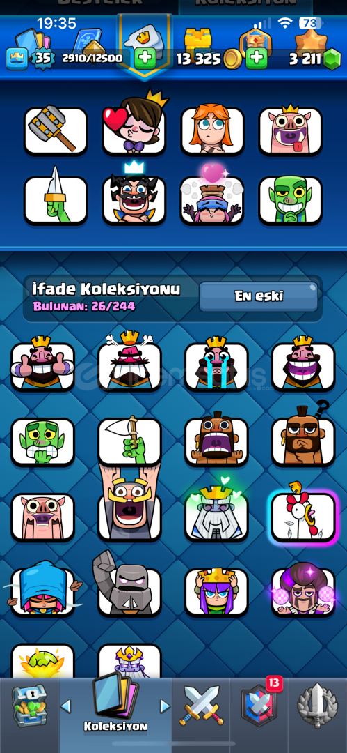 3200 elmas 6750 kupa 118 karakter 20 den fazla emoji 35 seviye 2 adet evrim birkaç karakterin evrimleri yarıda bırakılmıs e...