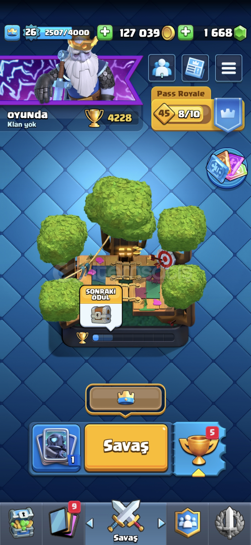 Clash royale 4228 kupa hesap 8 efsanevi 1600+ taş