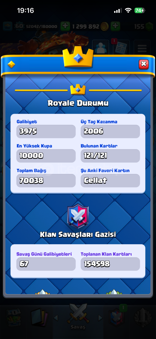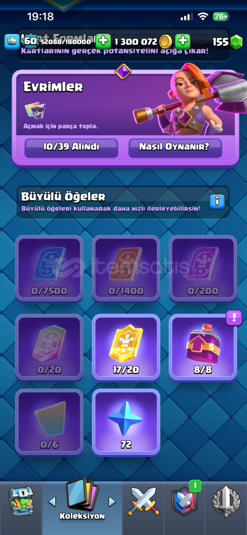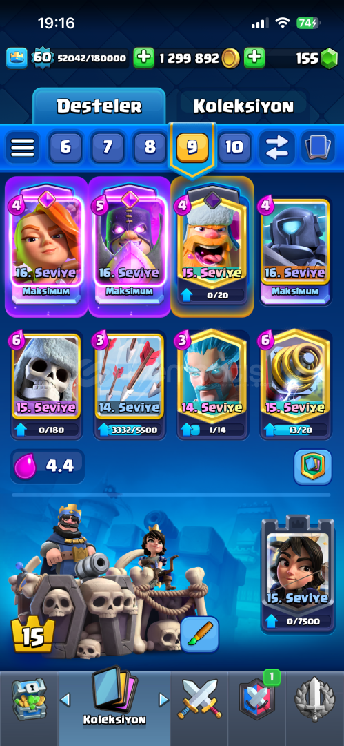 60 seviye ()(BÜTÜN KARTLAR ACIK)(10TANE EVRİM Lİ KART)