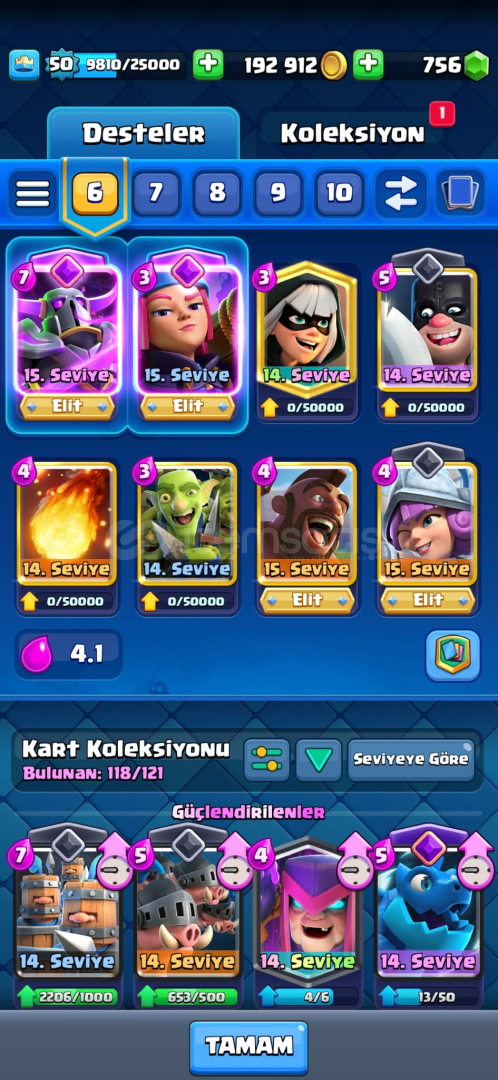 elit kartlar dışında 14 seviye olan 5-6 tane kartı vardır