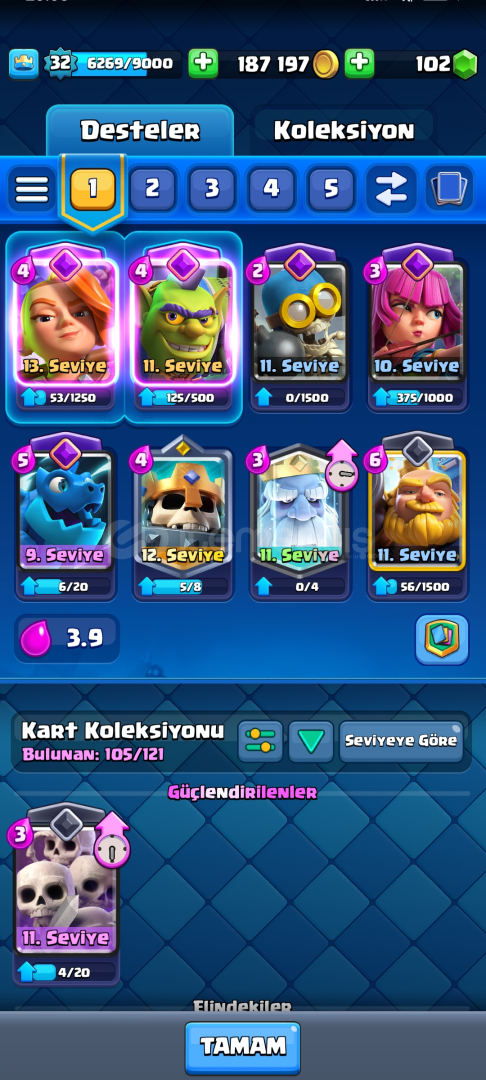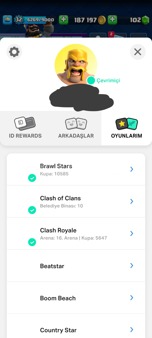 Clash Royale 5k kupa hesap + brawl stars + coc