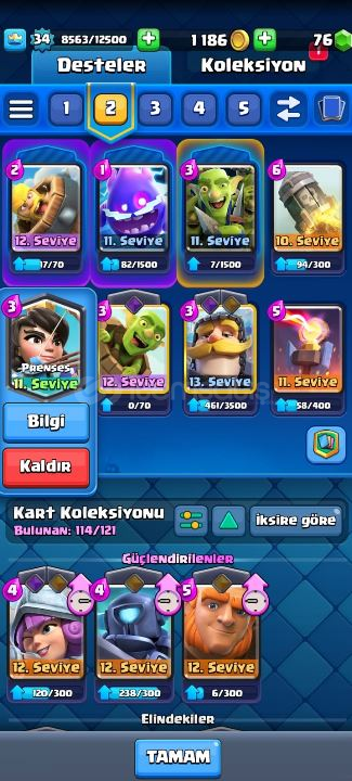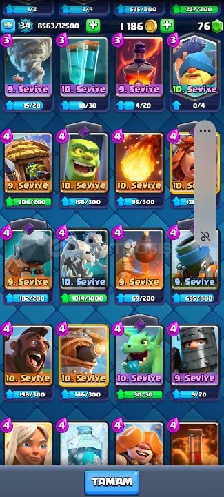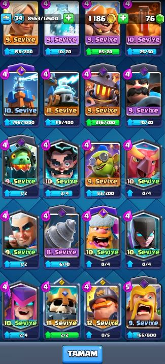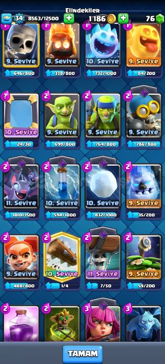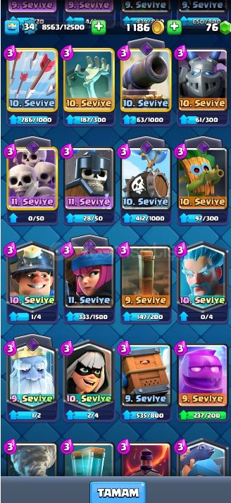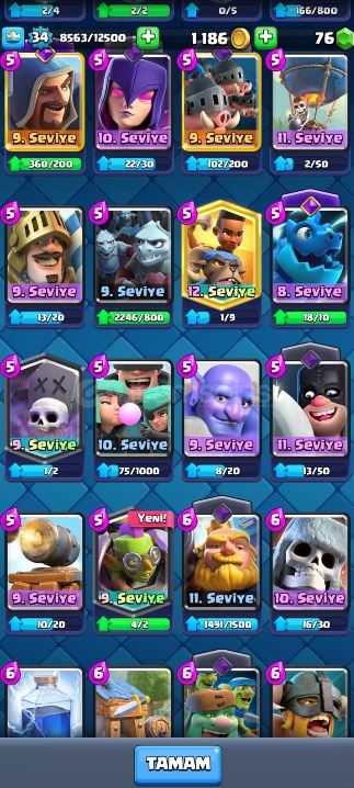 clash royale 6.3k kupalı hesap tüm efsolar var şampiyonlardan sadece 2 tane yok , log bait destesinin levelleri iyi