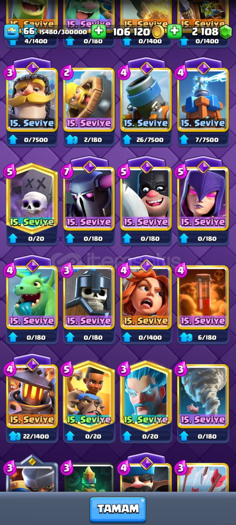 🔥 CLASH ROYALE FULL MAX HESAP SATILIK! 🔥  💥 +70 ADET 14. SEVİYE MAKS KART!  🃏 +30 ADET 15 SEVİYE KART!  🏆 TOPLAM 15.000+ KUPA!  🕹 7 SENELİK EMEK – TEMİZ VE OTURMUŞ HESAP!  👑 TÜM EFSANEVİLER AÇIK, FULL GELİŞMİŞ!  🎯 KULE KAPLAMALARI + ÖZEL EMOJİLER + PASS ROYALE ÖDÜLLERİ!  &...