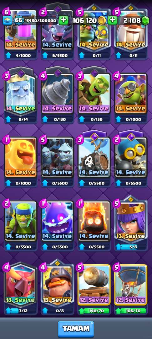 💥 +70 ADET 14. SEVİYE MAKS KART!