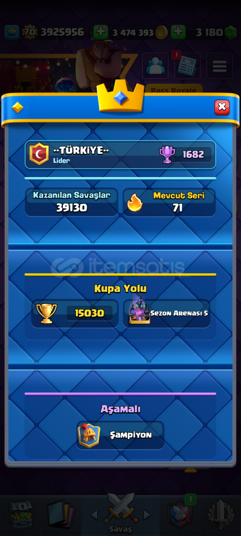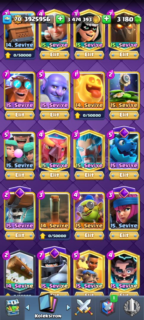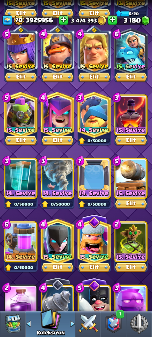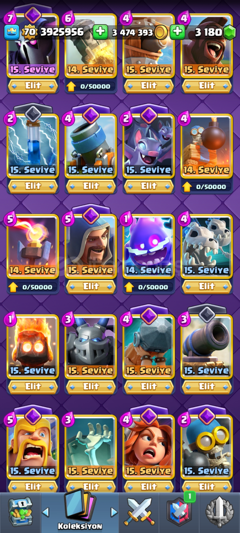 Clash Royale 70 seviye 15.030 kupa nerdeyse Max