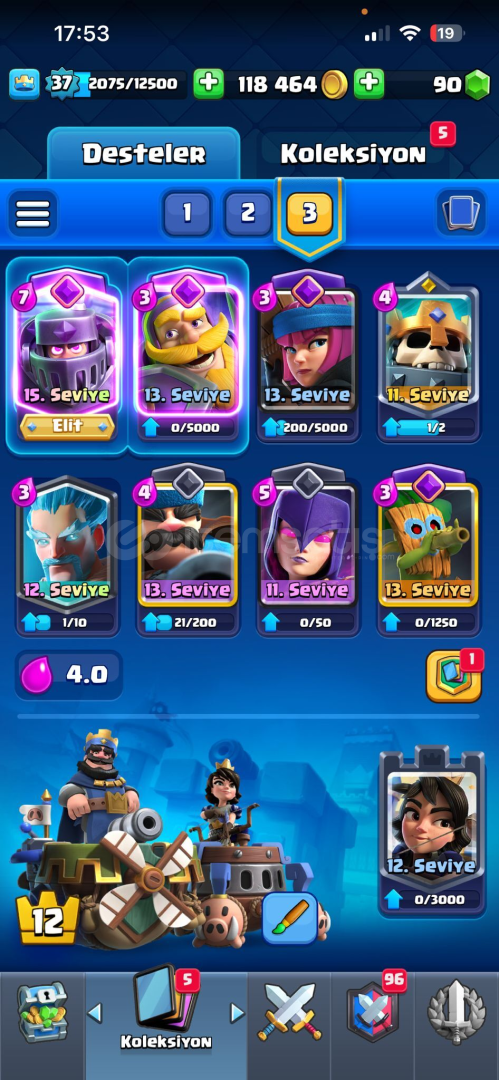 HESABA YAKLAŞIK 6000 TL PARA YATIRDIM KENDİ ÖMÜRLÜK HESABIM GEM SAYISIZ EMOJİ PASSROYALEKÜÇÜK PRENS ALTIN ŞOVALYE İSKELET KRAL BULUNMAKTAEVRİMLER MEGAŞOVALYE ŞOVALYE FİŞEKÇİ DART GOBLŞİNİ ELEKTRO EJDER DOMUZCUK OKÇU TESLA BÜYÜCÜ1 ADET ŞAMPİYON 12 LVL KÜÇÜK PRENSMAİL DEĞİŞİYOR PAZARLIK YAPARIZ BİRSÜRÜ ...
