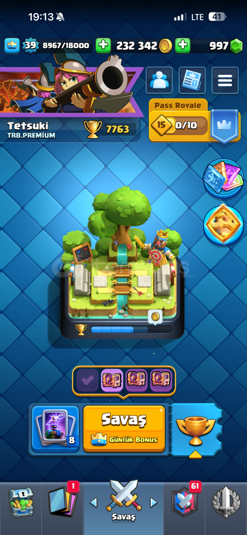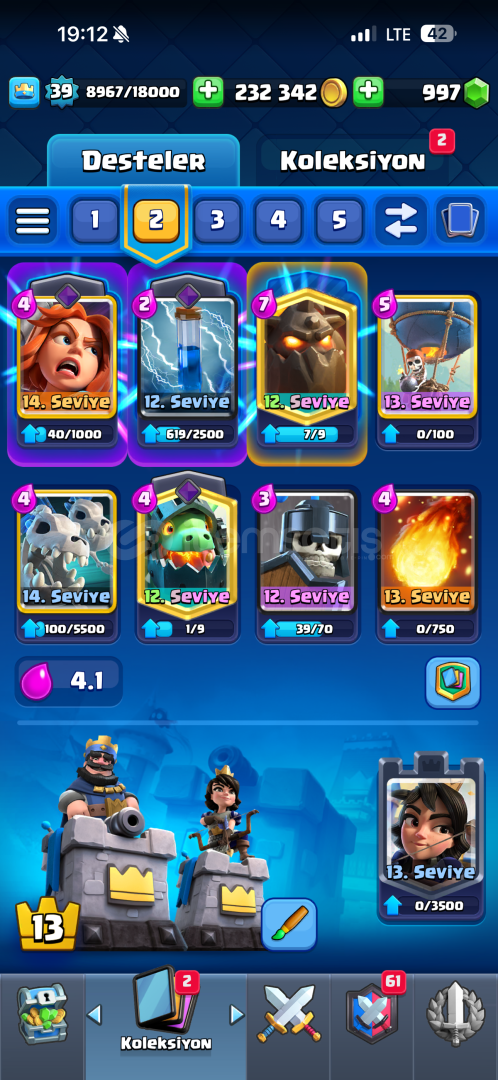 CLASH ROYALE 7700 kupa + hesap 116 karakter var