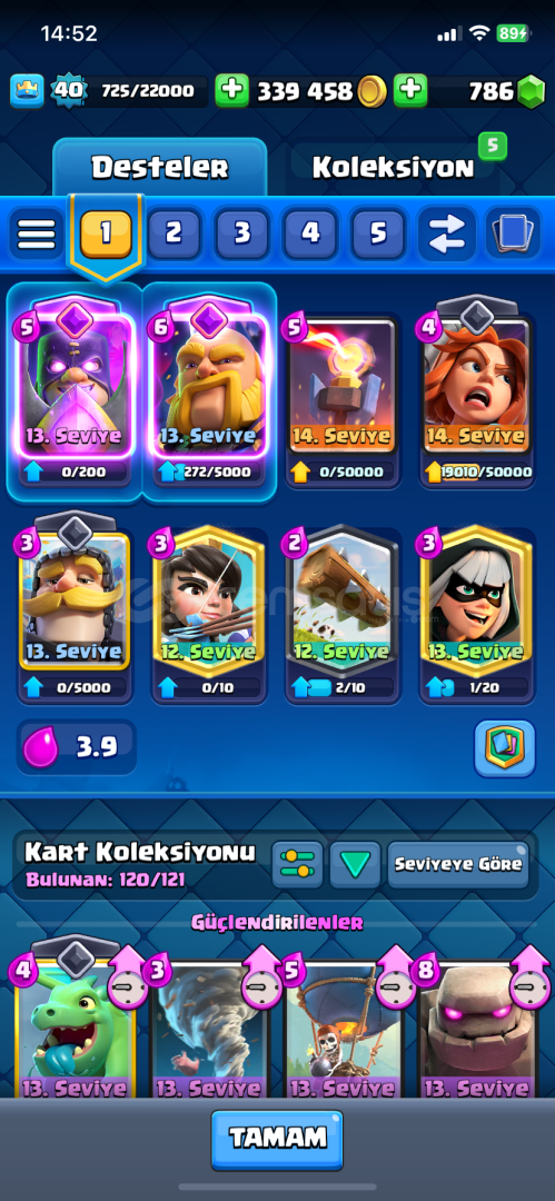 24 emoji 120 karakter 786 elmas 339k altın +2 evrim kartı 40 level