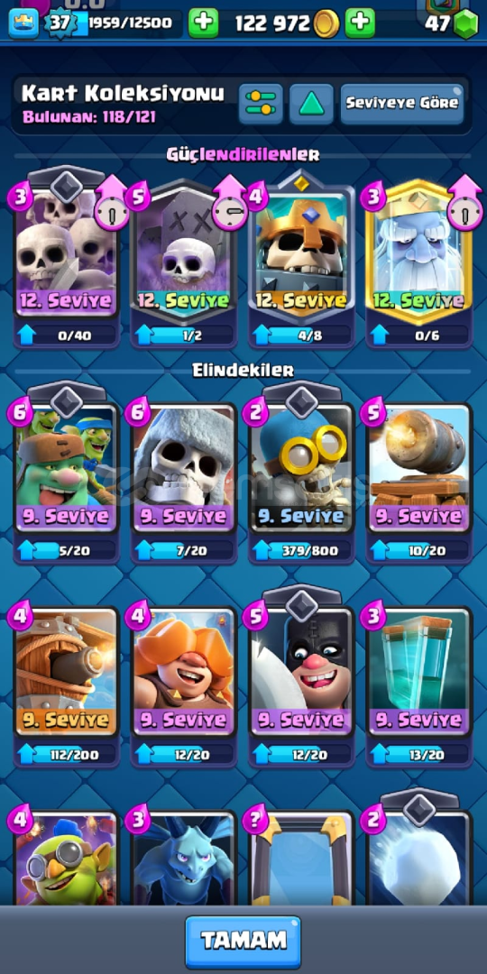 CLASH ROYALE 7K KUPALI 6 EVRIMLI GMAİL DEGİSEN