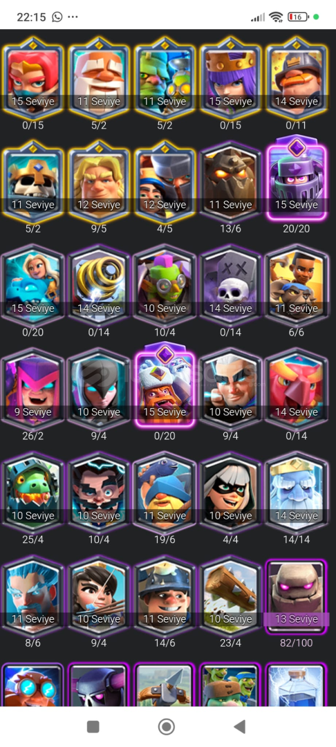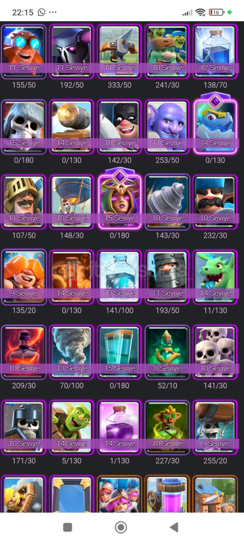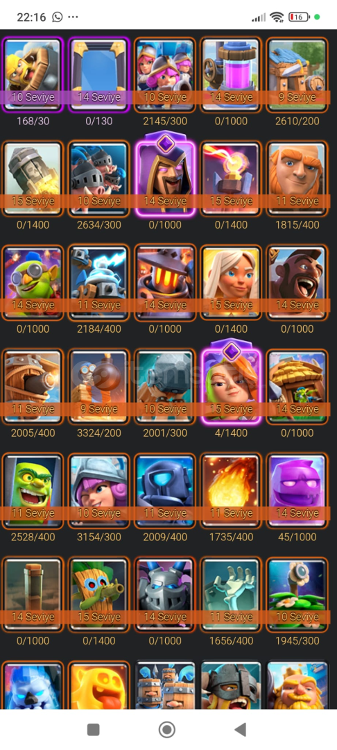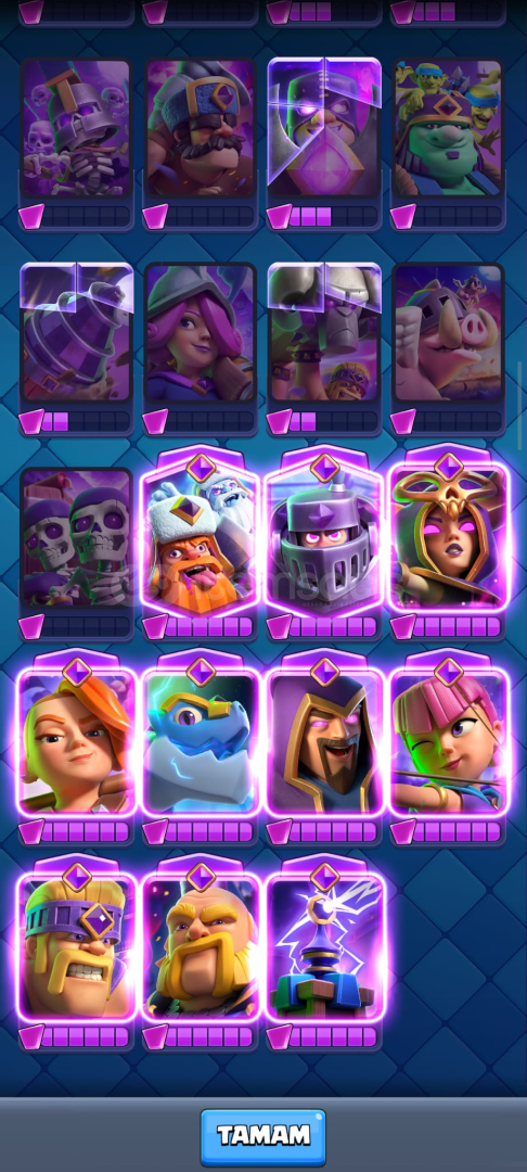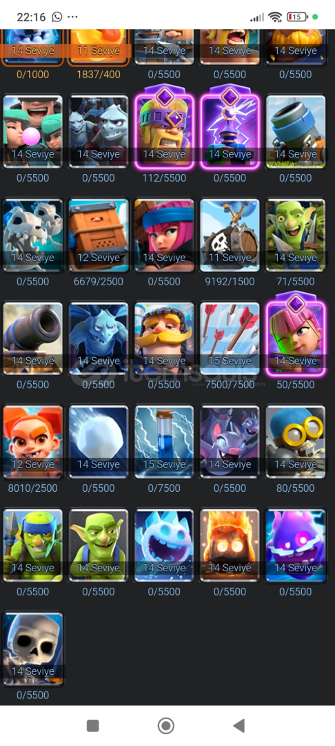 BÜTÜN KARAKTERLER VAR. 10 TANE EVRİM AÇIK BAZILARIDA YARIM 15 TANE KARAKTER 15LV 45 TANE KARAKTER 14LV DİĞERLERİ İSE DEĞİŞİYO 9 YIL ROZETİ VAR 15000 KUPA. HESAPTA 1000 TAŞ VAR. 59LV HESAP